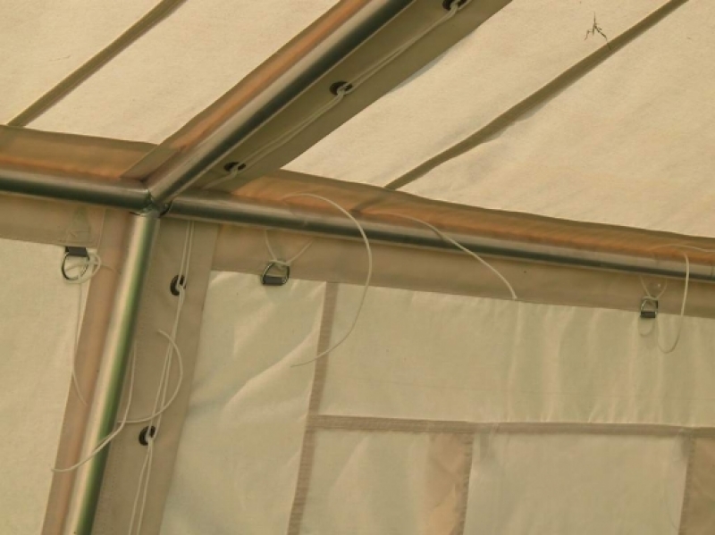 All guy points on the weather eaves are assembled with poly-polyester strap 25 mm and galvanized D rings.