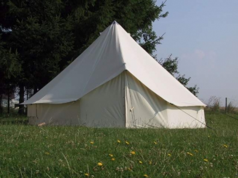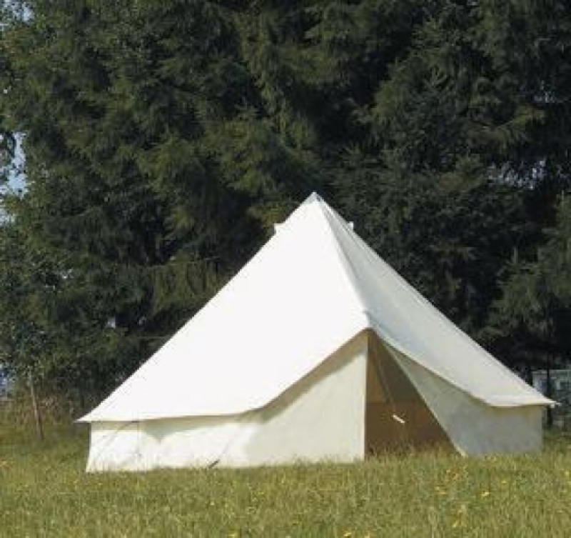 Fabric tent tarpaulin: cotton, ca. 280g/m2, water repellent with anti fungal treatment.
